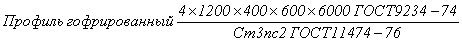 Гофрированный профиль толщиной 4 мм, шириной 1200 мм, с шагом гофра 400 мм, высотой гофра 60 мм, длиной 6000 мм по ГОСТ 9234 из заготовки нормальной точности прокатки Б с механическими свойствами по ГОСТ 14637, из стали марки Ст3пс2: