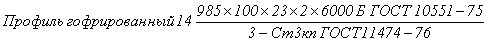 Гофрированный профиль типа 14 (тип профиля соответствует номеру чертежа) шириной полки 100 мм, высотой 23 мм, толщиной 2 мм, длиной 6000 мм по ГОСТ 10551 из заготовки нормальной точности прокатки Б, 3-й категории по ГОСТ 16523, из стали марки Ст3кп: