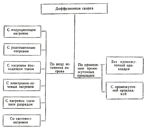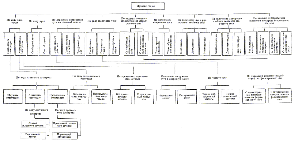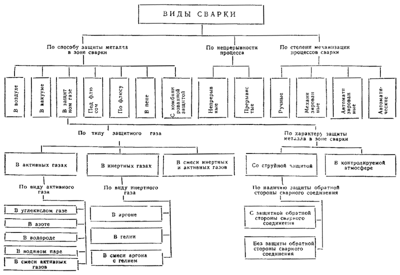 Примечания: 1 Диффузионная сварка может осуществляться с применением большинства источников энергии, используемых при сварке металлов, но выделяется как самостоятельный вид сварки по относительно длительному воздействию повышенной температуры и незначительной пластической деформации. 2 В комбинированных технологических процессах возможно одновременное использование разных видов сварки. 4. Классификация видов