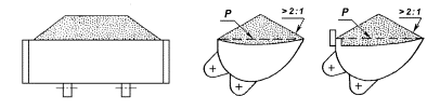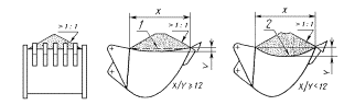 разделительной поверхности) с уклоном 1:1 (45°) в ковшах типа “обратная лопата”