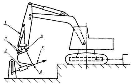 - усилие на рабочем органе; 6 - кромка ковша Рисунок Б.1 - Гидравлический экскаватор, оборудованный