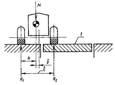 поперечной координаты в горизонтальной плоскости 1 - весы; 2 - колея; R1