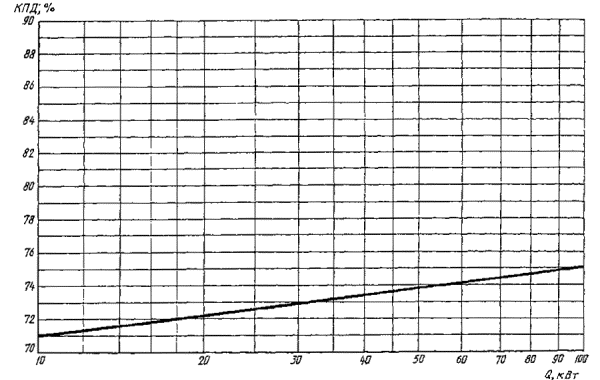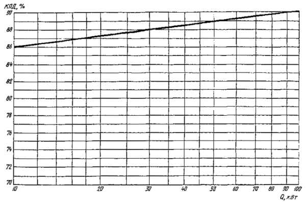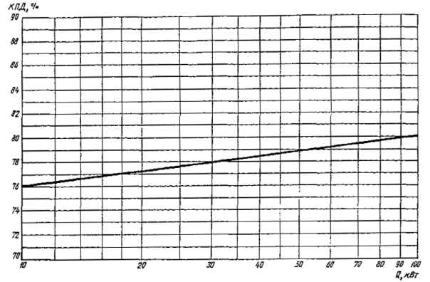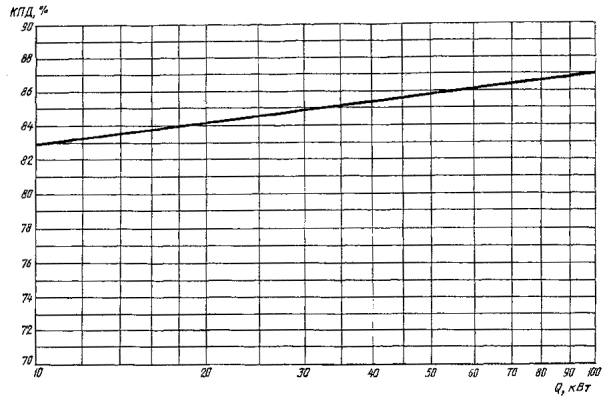 водоподогревателем допускается снижение этого значения не более чем на 2 %. График зависимости КПД котлов для сжигания жидкого топлива и газа,