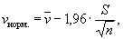 принимают нижнее значение доверительного интервала распределения Стьюдента по