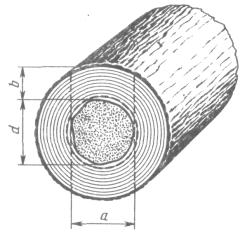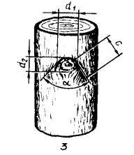 наибольшим диаметрами раневого пятна (черт. 6, размеры d2 и d1) и диаметром сортимента у места