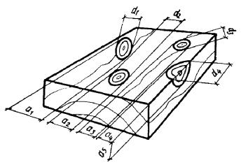 Открытые сучки измеряют по наименьшему диаметру (черт. 6, размер d). Присучковый наплыв в размер