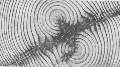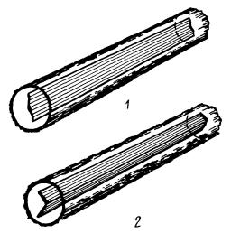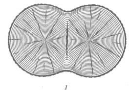 1 2 1 - тангентальный (виден по трещинам, ель); 2 -