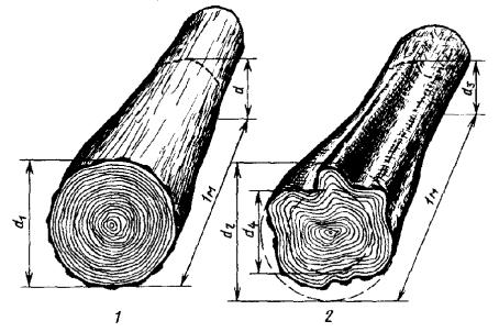 лесоматериала, измеренными у комлевого торца и на расстоянии