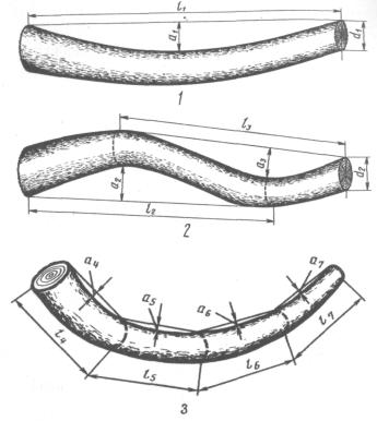 Простую кривизну измеряют по величине стрелы прогиба сортимента в месте его
