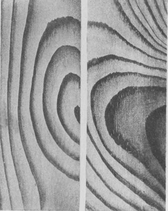 в доске (сосна) 1 - односторонняя на радиальной и торцовой