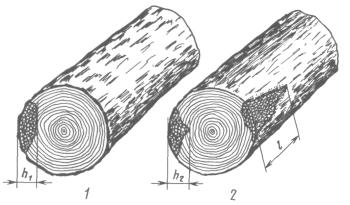 прорости в круглых лесоматериалах 1 - открытая; 2