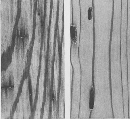 грибные окраски (синева, розовая и коричневая окраска, сосна) Черт. 61 Заболонные