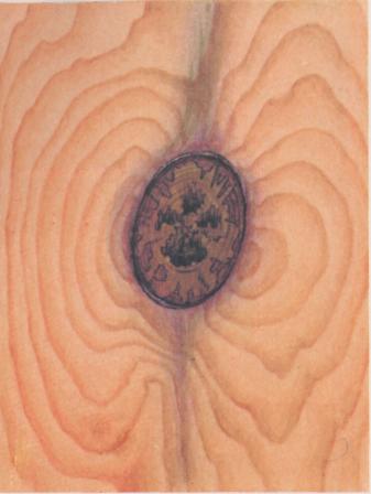 длина которого примерно соответствует диаметру заросшего сучка в миллиметрах. Глубину