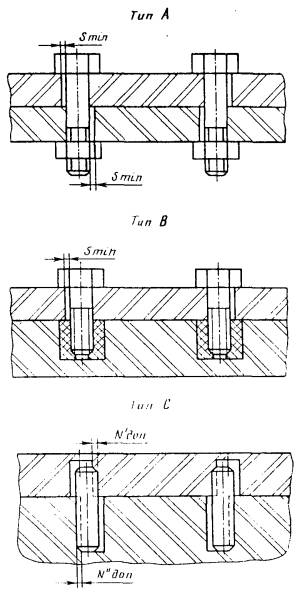 соединяемых деталях. К типу А относятся, например, соединения болтами. В - зазоры для прохода
