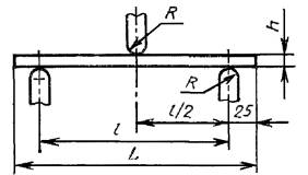опор и ножа должна быть равной ширине образца или превышать ее. Радиусы R цилиндрической части опор и ножа должны быть равны