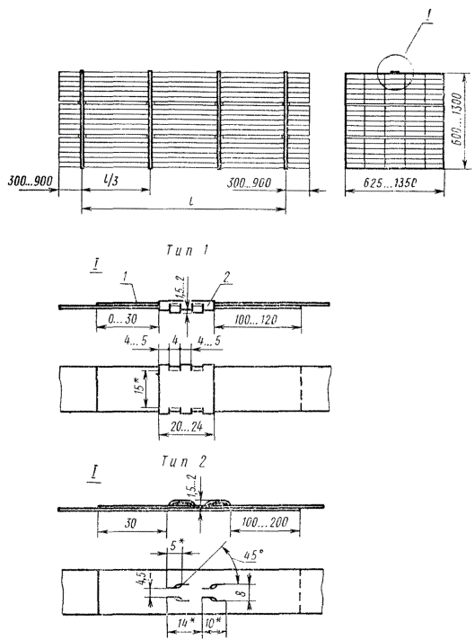 размеры узлов соединения должны соответствовать указанным на чертеже. Пример условного обозначения: Обвязки с