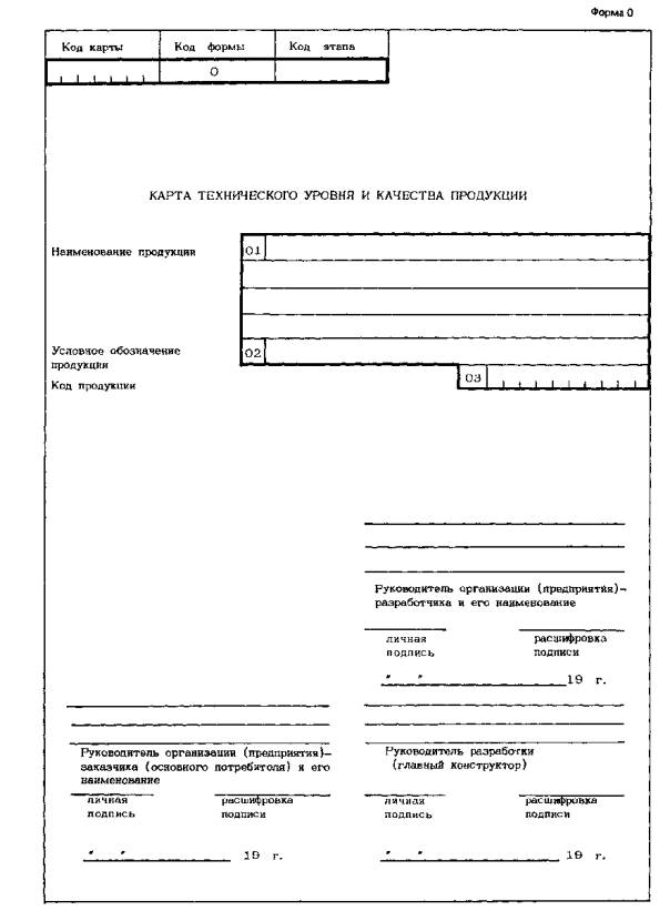 на этапе разработки технического задания на продукцию. Реквизиты форм 0, 1 -4 карты