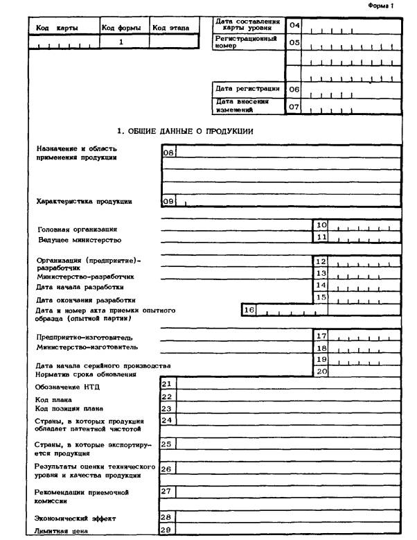 Обязательное ФОРМЫ КАРТЫ ТЕХНИЧЕСКОГО УРОВНЯ И КАЧЕСТВА ПРОДУКЦИИ И ПРАВИЛА ИХ ЗАПОЛНЕНИЯ