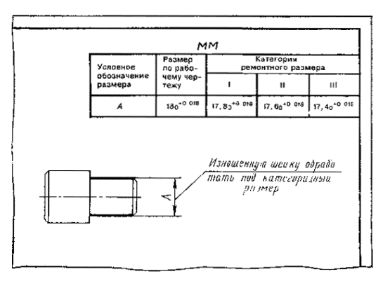 ремонтных чертежах категорийные и пригоночные размеры, а также размеры детали,