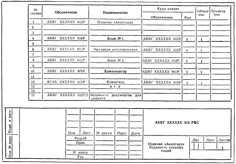РВС составляют по формам 1 и 1а ГОСТ 2.106-68. Заполняют РВС по