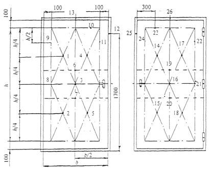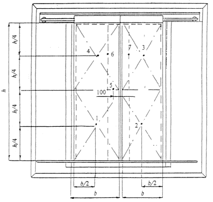 жесткости или сквозных деталей (термопара 5); б) посередине каждой четверти площади двери, но не совпадающей с