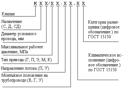 клапана в пространстве (если оно ограничено); - условное обозначение