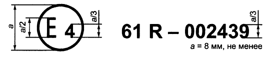 Приведенный выше знак официального утверждения, проставленный на транспортном средстве неиндивидуального пользования, указывает, что этот тип транспортного средства официально утвержден в Нидерландах (Е4) в отношении наружных выступов на основании Правил ЕЭК ООН № 61 под номером официального утверждения 002439.