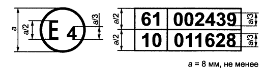 Приведенный выше знак официального утверждения, проставленный на транспортном средстве неиндивидуального пользования, указывает, что этот тип транспортного средства официально утвержден в Нидерландах (Е4) на основании Правил ЕЭК ООН № 61 и Правил ЕЭК ООН № 10). Номера официального утверждения указывают, что к моменту предоставления официального утверждения Правила ЕЭК ООН № 61 были в их первоначальной форме, а в Правила ЕЭК ООН № 10 были включены поправки серии 01.