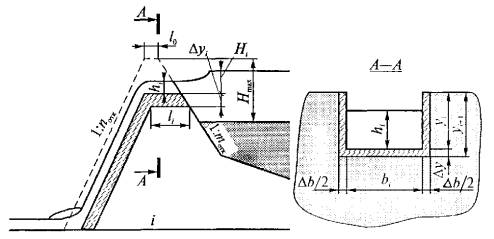 значения параметров потока в сечении у подошвы откоса: глубины hmax и скорости umax. Ширина