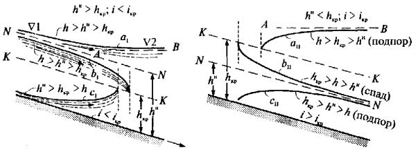 соотношения глубин hi-1, hкр, hн и уклона будем иметь кривую