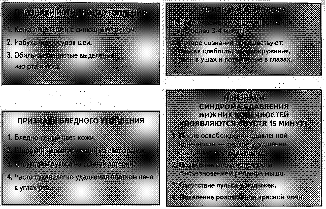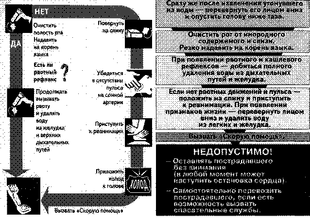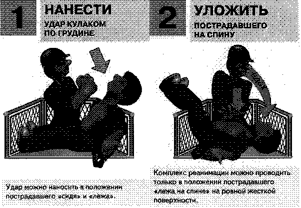 к голове. - Для удаления воздуха из желудка – повернуть пострадавшего на живот и надавить кулаками ниже пупка.