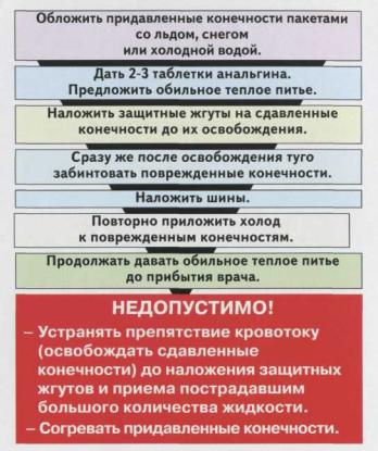 Сдавление конечностей; укусы змей и насекомыхСХЕМА ДЕЙСТВИЙ В СЛУЧАЯХ ДЛИТЕЛЬНОГО СДАВЛЕНИЯ КОНЕЧНОСТЕЙ