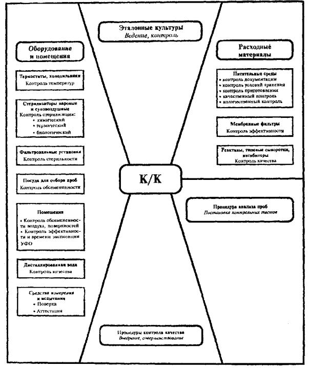 процедур контроля качества, выполняемых на различных этапах микробиологических