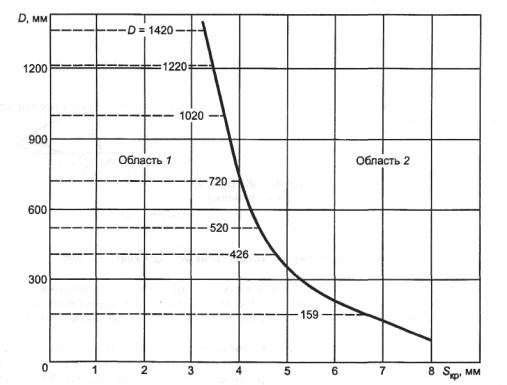D - диаметр трубы; Sкр - критическая толщина стенки, при