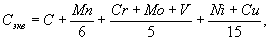 С, Si, Mn, Cr, Mo, V, Ni, Сu, В - массовые доли в стали соответственно