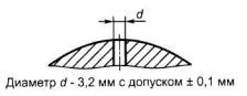 искусственных дефектов в контрольных образцах для сквозных отверстий: - диаметр d - не более 3,2