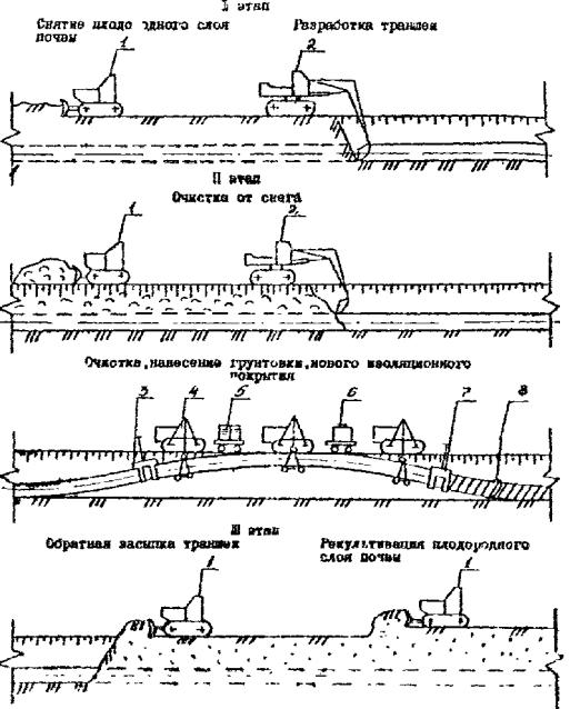 покрытия и одновременным заглублением путем переукладки в новую траншею допускается на