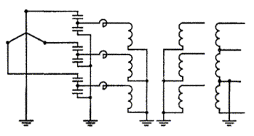 включения однофазных заземляемых трехобмоточных трансформаторов в трехфазных