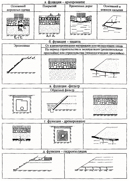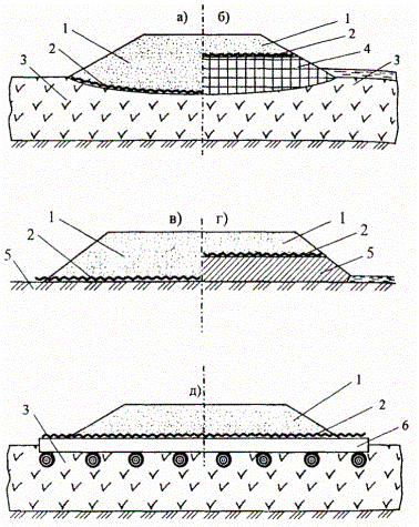 слоев (прослоек) различного назначения (армирующих, дренирующих, защитных,