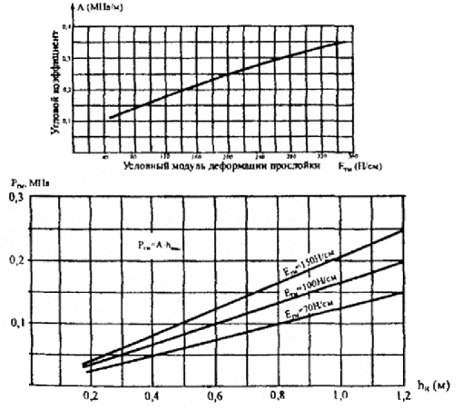 толщины тонкослойной насыпи hн (м) при Р0 = 0,6