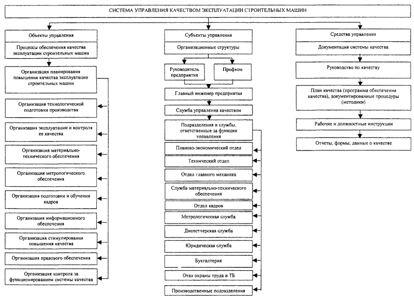 система управления качеством эксплуатации машин обеспечивает единство и взаимосвязь технических, экономических, социальных, организационных и воспитательных мероприятий по повышению качества эксплуатации строительных машин; с экономической точки зрения требуемый уровень качества эксплуатации машин должен поддерживаться предприятием при оптимальных затратах;