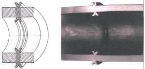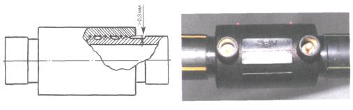 середине образца напротив сварного шва. Местное утолщение грата образца со