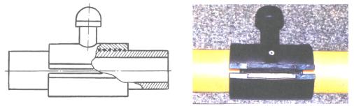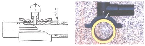 оси трубы, ось бойка пересекалась с осью горловины седлового отвода и удар