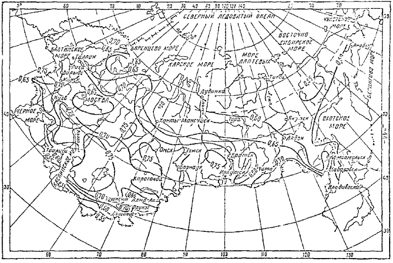 пределах 0,5-0,7, а ψд определяется как средневзвешенная величина для всей площади водосбора с учетом средних значений