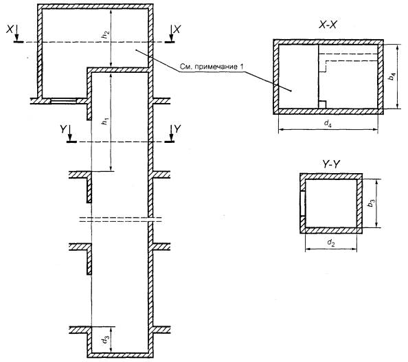 полностью открытых дверях кабины и шахты. 3.2.2 Внутренние размеры шахты (см. рисунки 2а и 2б) 3.2.2.1 Ширина шахты b3 - горизонтальное расстояние между внутренними