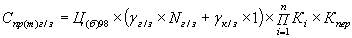 определяется в соответствии с формулой 3.1: Ц(б)98 = а + вх =