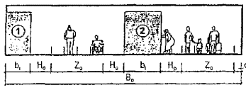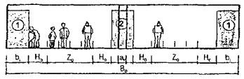 Расчет общей ширины пешеходного перехода проводится следующим образом: для пешеходных переходов без торгово-сервисных объектов (B01): Bo1 = Z01 + Σaк + Σ2dкj + 2dс; для пешеходных переходов с размещением