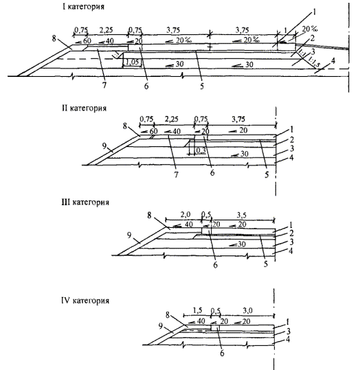 цементобетонным покрытием для дорог I - IV категорий: 1 - покрытие;