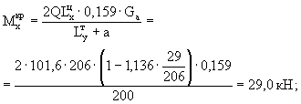 направлении М = 6,0(0,0592 - 0,09284×ln(18,25/30)) = 0,63 тм; в поперечном