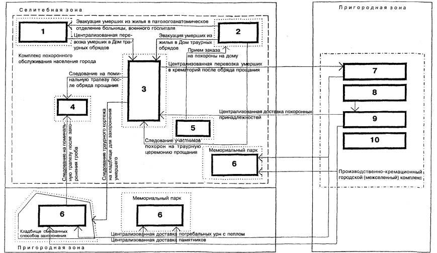 - Бюро похоронного обслуживания; 6 - административно-бытовое и обрядовое